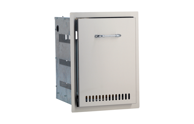 The Gas Tank Drawer has a 304 Stainless Steel Construction, is built to hold a 10 kg Gas Tank, and includes built-in venting & slide-out design.