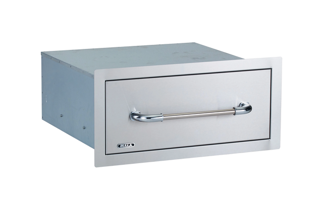 The Bull Large Single Drawer (Model #9980) is a premium addition to your outdoor kitchen, offering both functionality and durability. Crafted from 304-grade 16-gauge stainless steel, this drawer provides ample storage space for your grilling accessories and cleaning products.