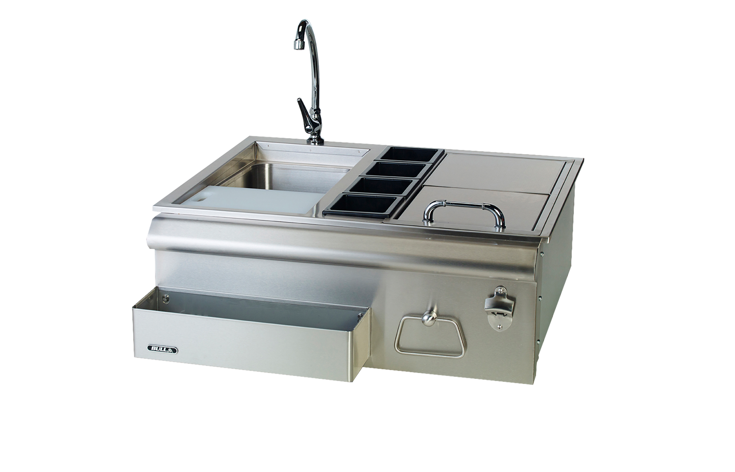 The Bull 76cm Bar Caddy (Model #97623) is an essential addition to your outdoor kitchen, offering both functionality and durability. Crafted from 304-grade 16-gauge stainless steel, this bar centre is designed to withstand New Zealand's diverse weather conditions, ensuring longevity and reliability.