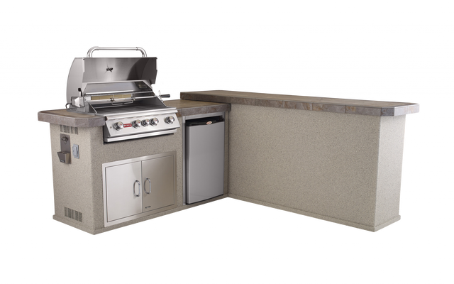 The Mesquite Q Island Kitchen Concept‘s expansive bar area is the best way to impress your guests with an outdoor BBQ. With its spacious seating you can upgrade your patio or backyard from the average outdoor furniture and cook your best grilling recipes in style. Features stainless steel gas grill and refrigerator.