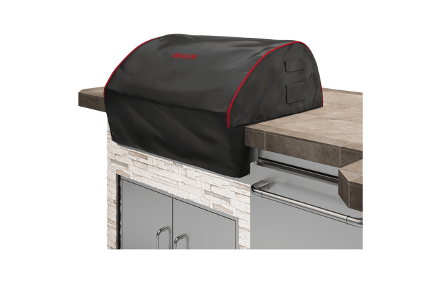 This 76cm grill head cover fits our Angus, Outlaw, and Lonestar Select built-in grills and has a heavy-duty 300D polyester construction as well as an inner elastic strap to fit perfectly and protect your grill cart from the elements.